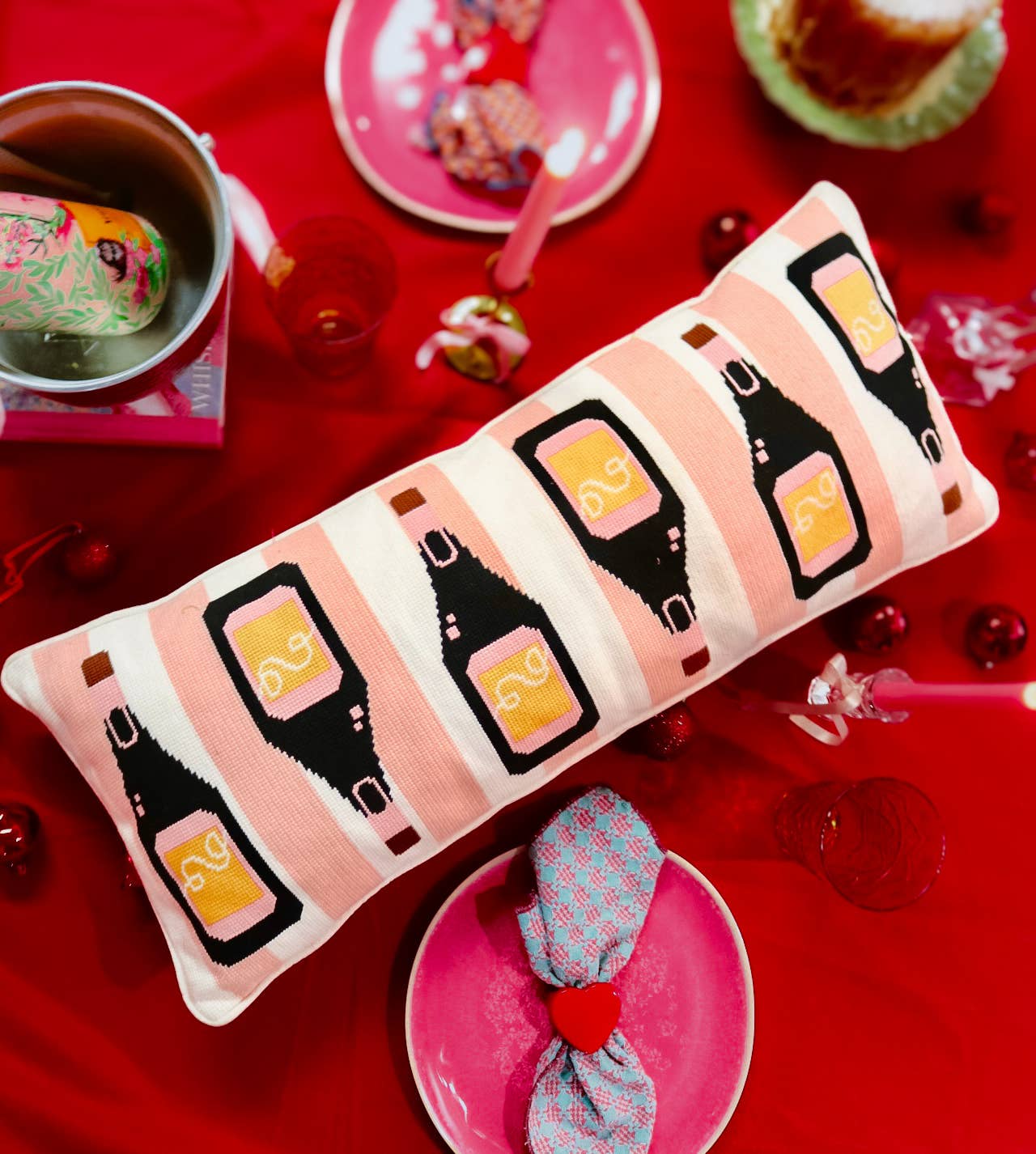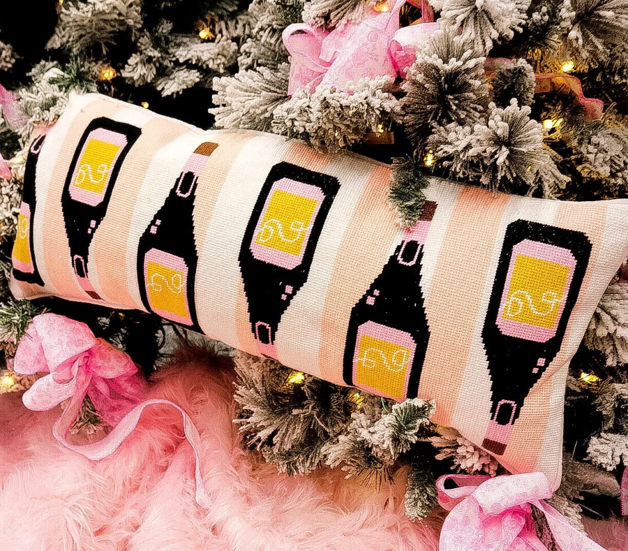 Champagne Needlepoint Lumbar Pillow