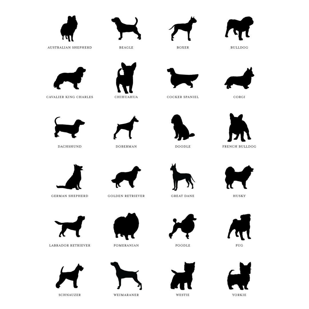 Each Pup Prints boxed set contains 10 letterpress note cards featuring the silhouette of your favorite dog breed in black ink. All are letterpress printed by hand on antique machinery and paired with white envelopes featuring black and white paw print liners. Made in America and hand lined.