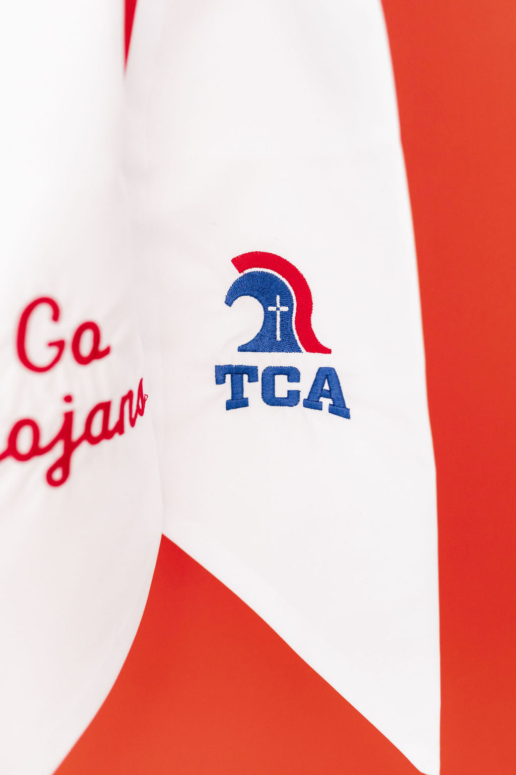 As a note: Texas Tech is a 54 inch - weather resistant, Highland Park is a 54 inch - navy linen and TCA is a 54 inch white linen.