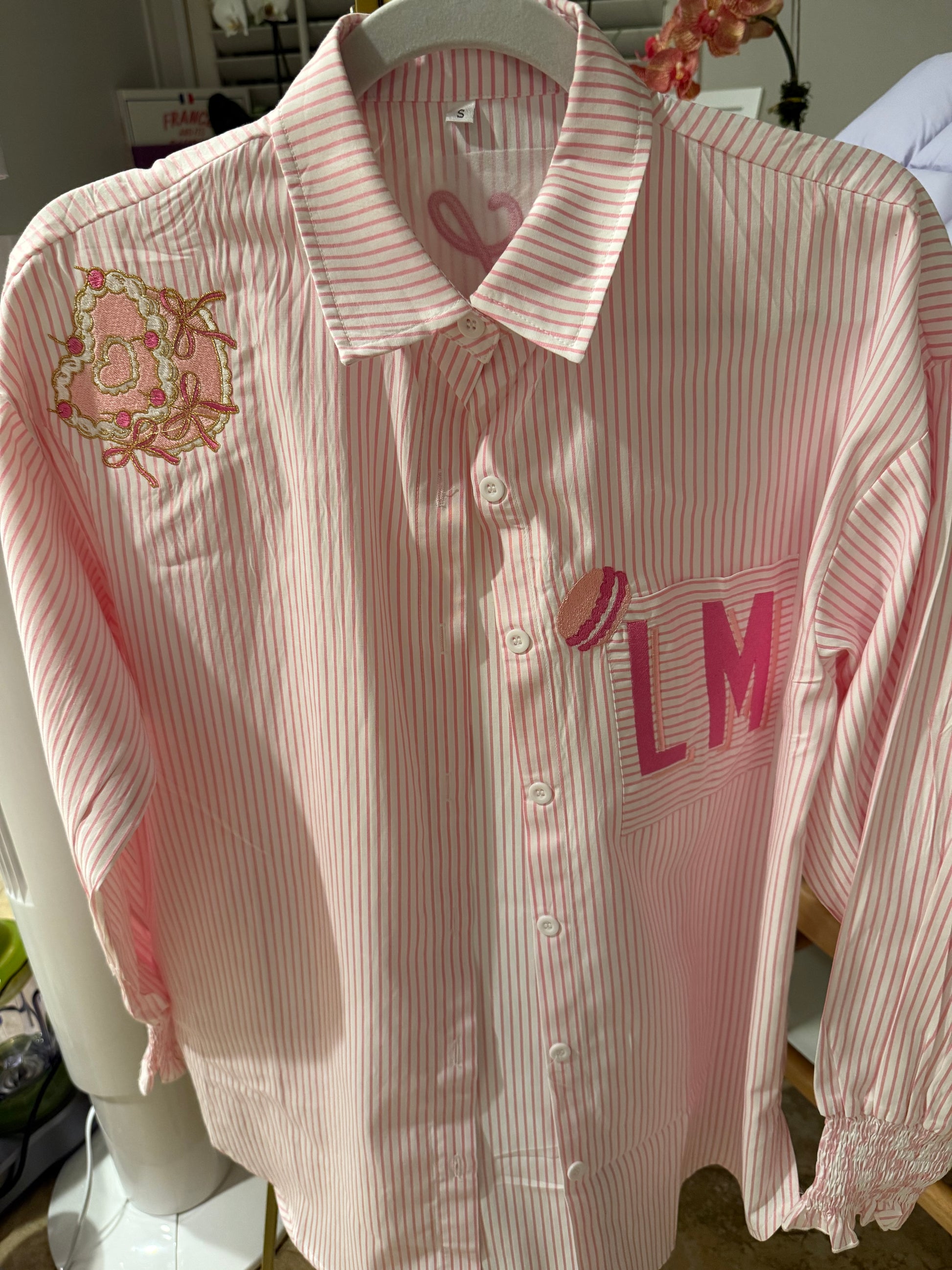 Our boyfriend fit shirts have the best 'fit' and a smocked cuff sleeve.